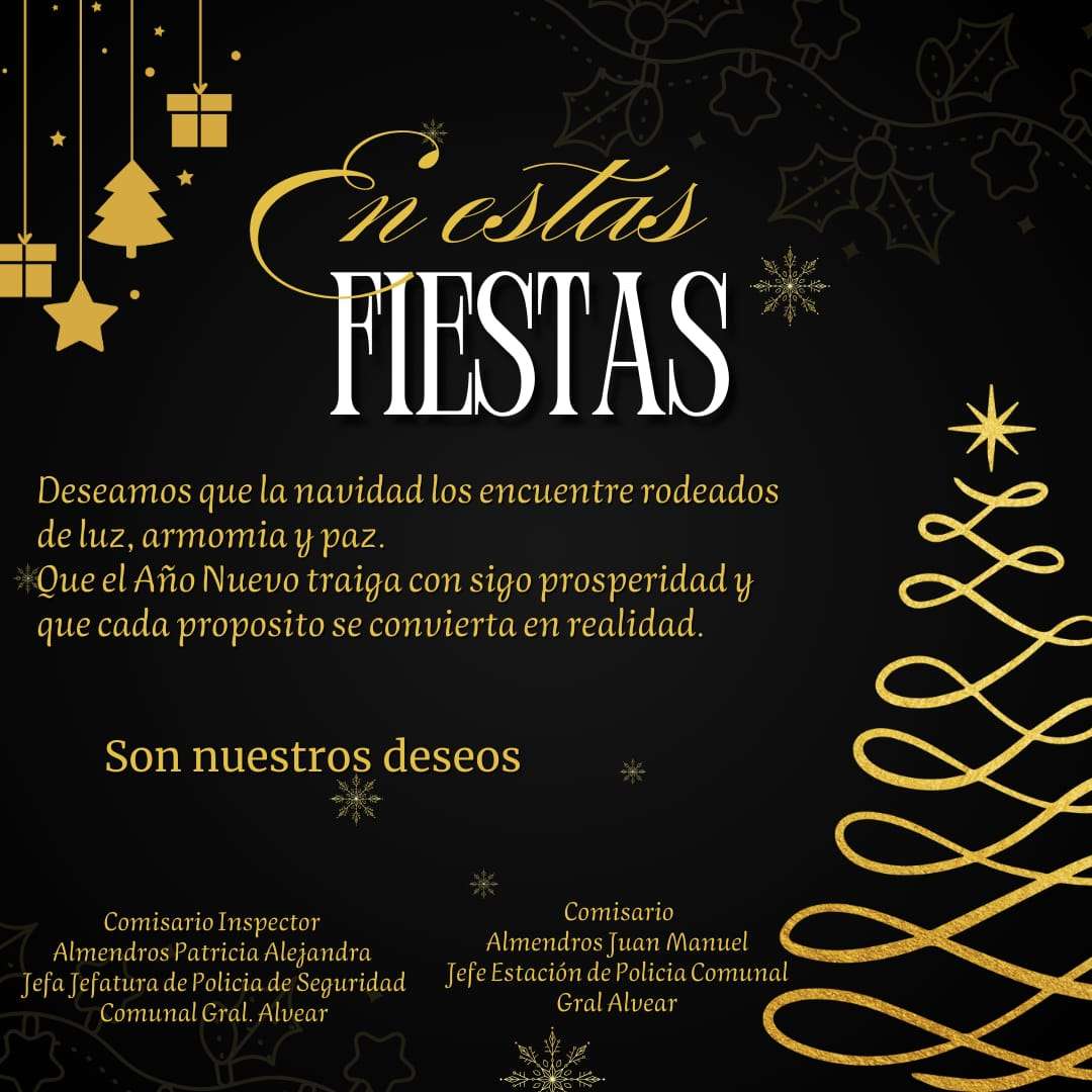 Felicies Fiestas desean desde la Policía Comunal de Gral. Alvear