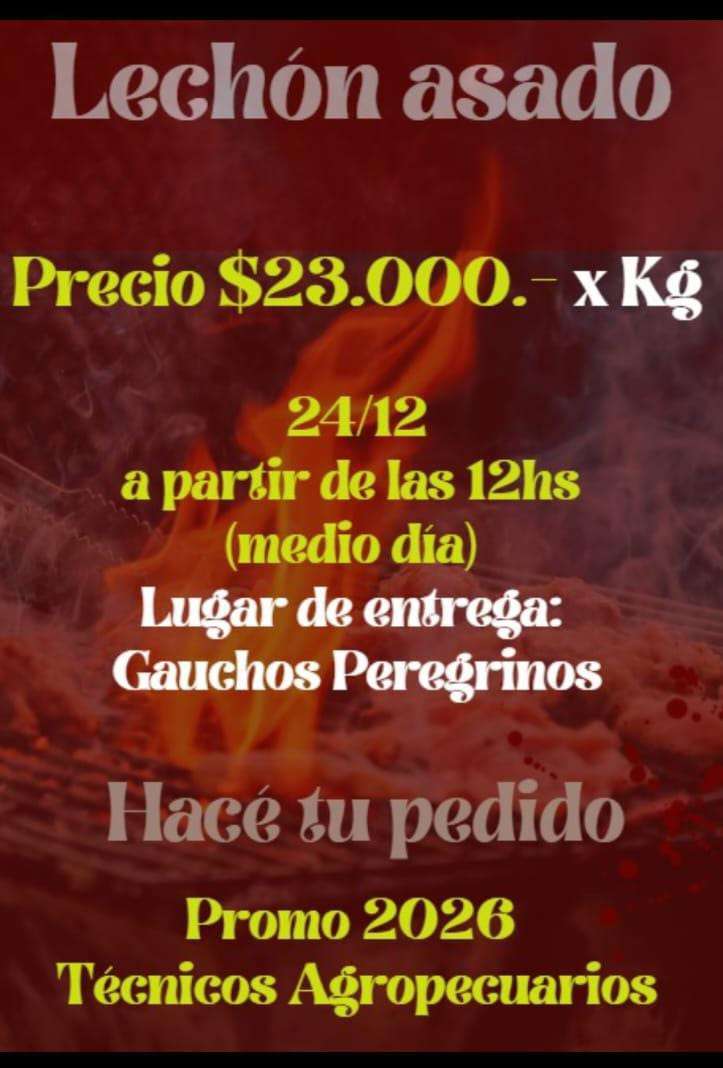 La Promo 2026 de Técnicos Agropecuarios venderán Lechón Asado $ 23000 el Kg