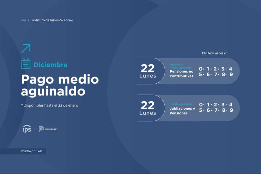 Jubilados y Pensionados: Pago del Medio aguinaldo Pago del Medio aguinaldo y Calendario de pagos de diciembre para las personas jubiladas y pensionadas de la provincia de Buenos Aires PAGO MEDIO AGUINALDO: PAGO HABERES DICIEMBRE: Ante cualquier consulta acercate al CAP local sito en Mármol 411, de lunes a viernes en el horario de 8 a 14 hs. Spread the love