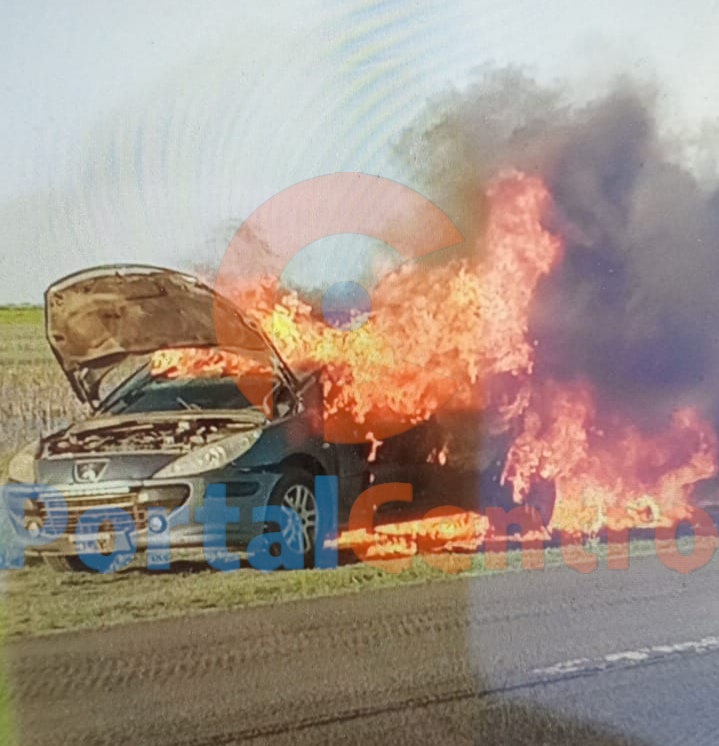 Un Auto se Incendio en Ruta 205 en cercanías a Estancia Santa Rita