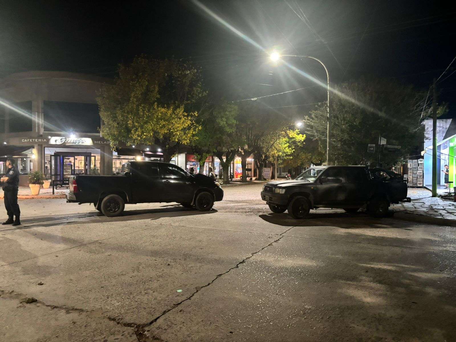 Según la información recabada, el hecho involucró a dos vehículos: una camioneta Toyota Hilux dominio ECE 029, conducida por Néstor Enrique Córdoba (54), quien circulaba por calle Alsina en sentido este a oeste; y otra Toyota Hilux dominio FUY 455, al mando de Daiana González Galván (32), que transitaba por San Martin en dirección norte a sur.