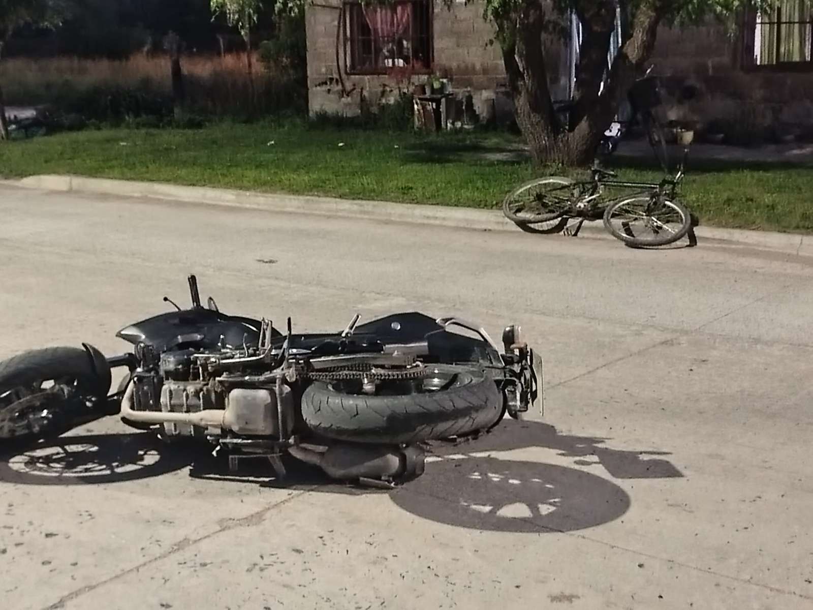 CHOQUE ENTRE MOTO Y BICICLETA Un siniestro vial ocurrió en Av. Belgrano y Vicente López, donde colisionaron una Moto y una Bicicleta, al mando de ambos vehículos de dos Masculinos.- Según información recolectada en el lugar al enfrentarse ambos vehículos no pudieron decidirse como cruzarse y se embistieron, por suerte ambos conductores solo tuvieron raspones por la caída a la cinta asfáltica.- En el lugar trabajaron Personal de la Policía Comunal de Gral. Alvear y una Ambulancia del Hospital Local.- Spread the love