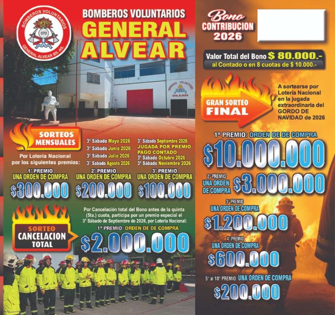 La Sociedad de Bomberos Voluntarios informa a toda la comunidad que se encuentra en circulación el Bono Contribución 2026