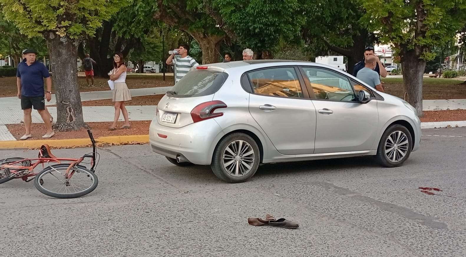 En la tarde del Lunes 26 de Enero un accidente vial ocurrió en la Avenida Sarmiento a metros de Hipólito Irigoyen, entre un Automóvil Peugeot y un hombre adulto mayor que circulaba en bicicleta.-