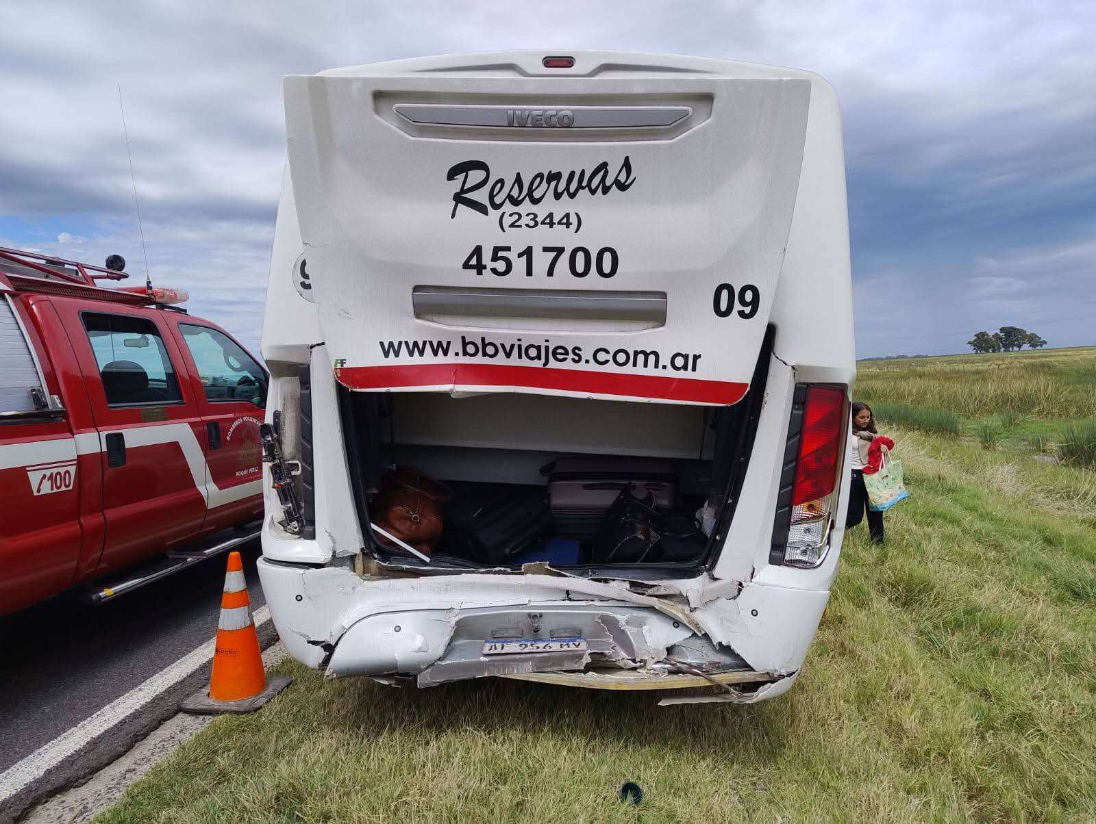 Un choque por alcance entre una combi de BB Viajes y una camioneta Chevrolet S10 se registró en el km 154 de la Ruta Nacional 205, en jurisdicción de Roque Pérez.