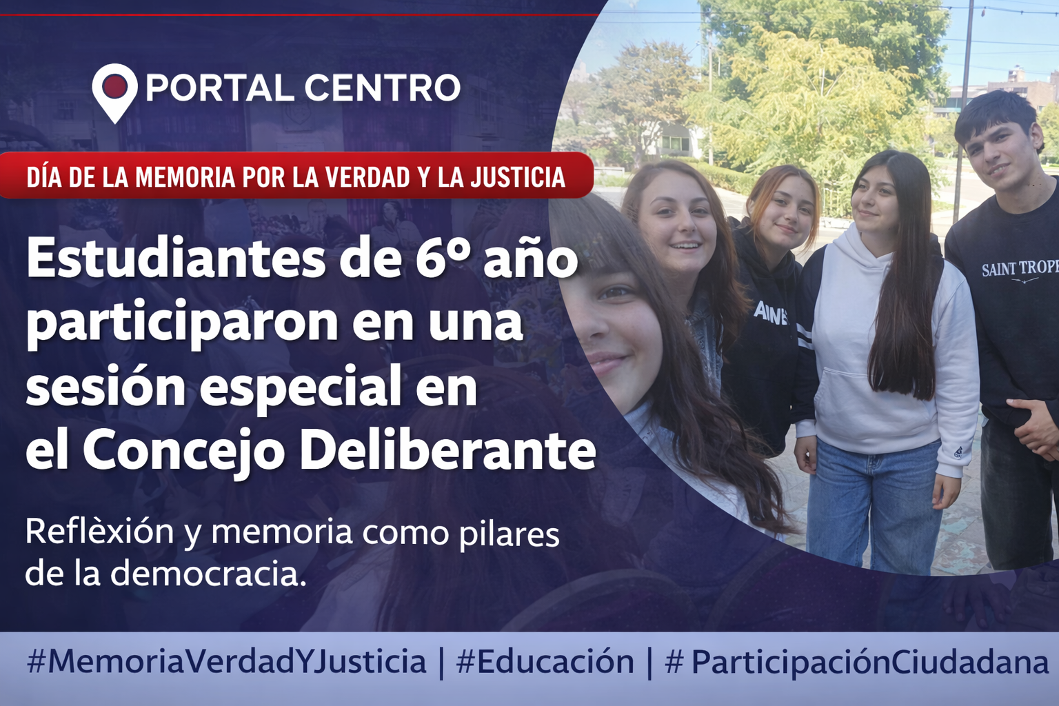 En el marco del Día de la Memoria por la Verdad y la Justicia, estudiantes de 6° año participaron de una sesión especial desarrollada en el Honorable Concejo Deliberante, en una jornada cargada de reflexión, aprendizaje y compromiso ciudadano.