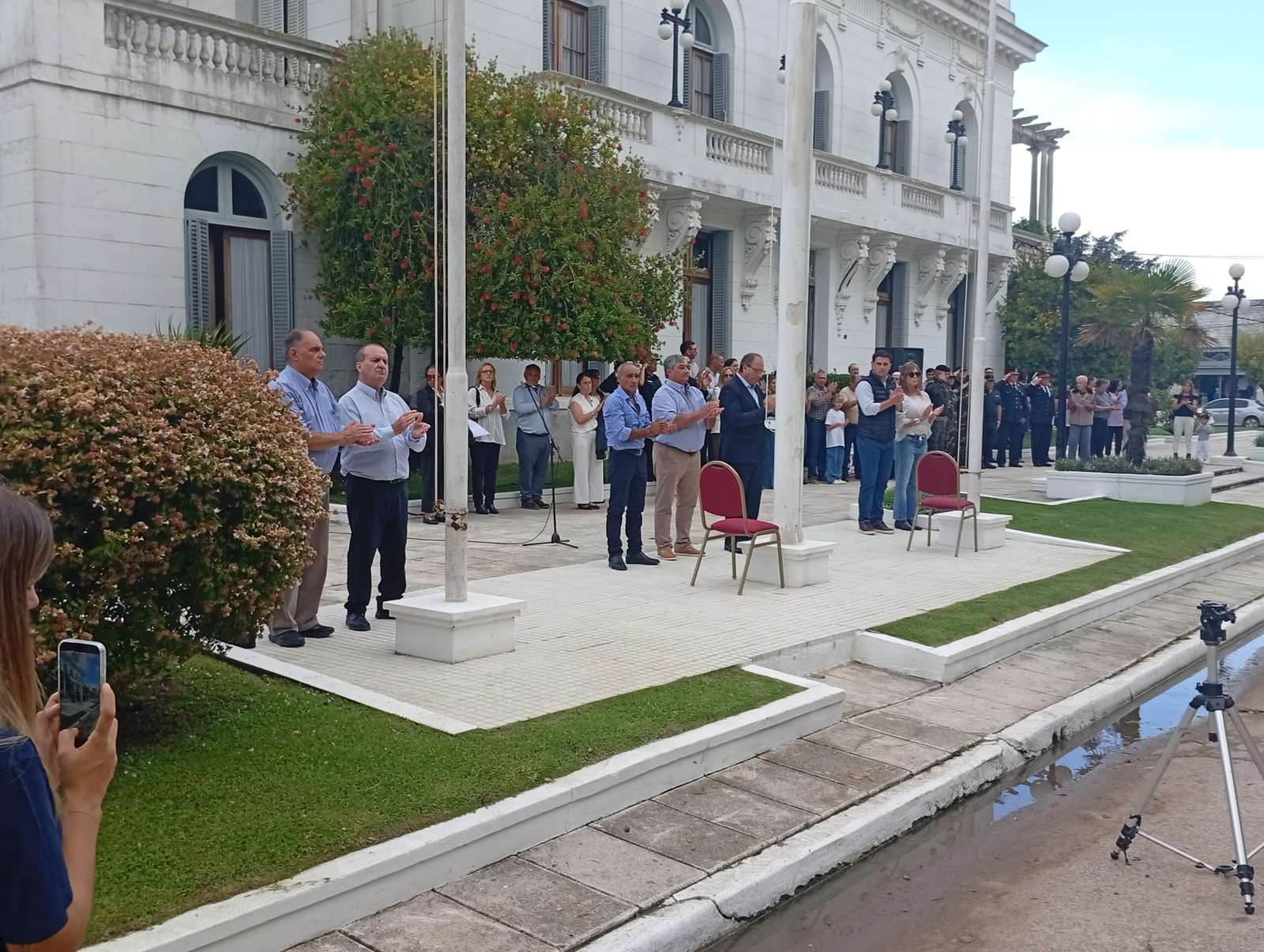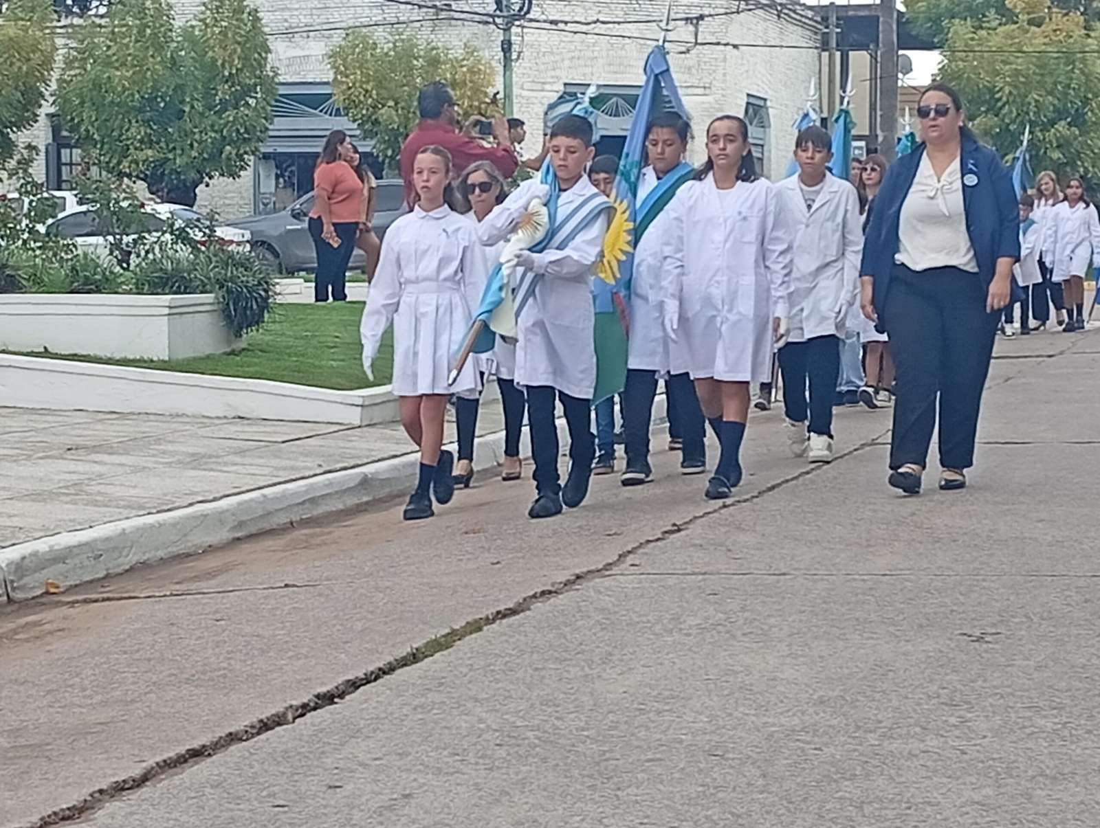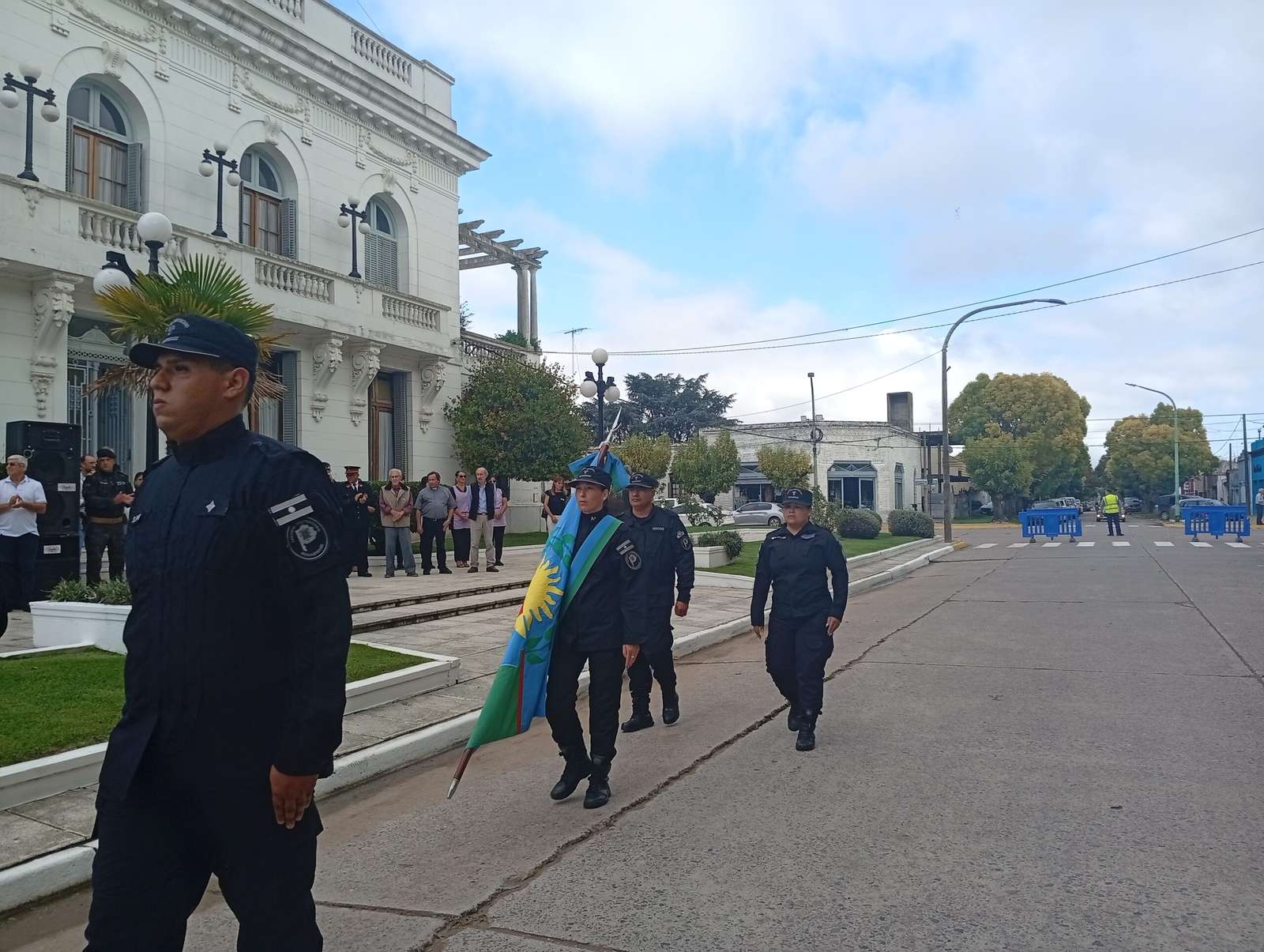 Posteriormente, a las 10:30 horas, se desarrolló el acto protocolar con la participación de las Banderas de Ceremonia de distintos establecimientos educativos, fuerzas de seguridad e instituciones deportivas de la comunidad.