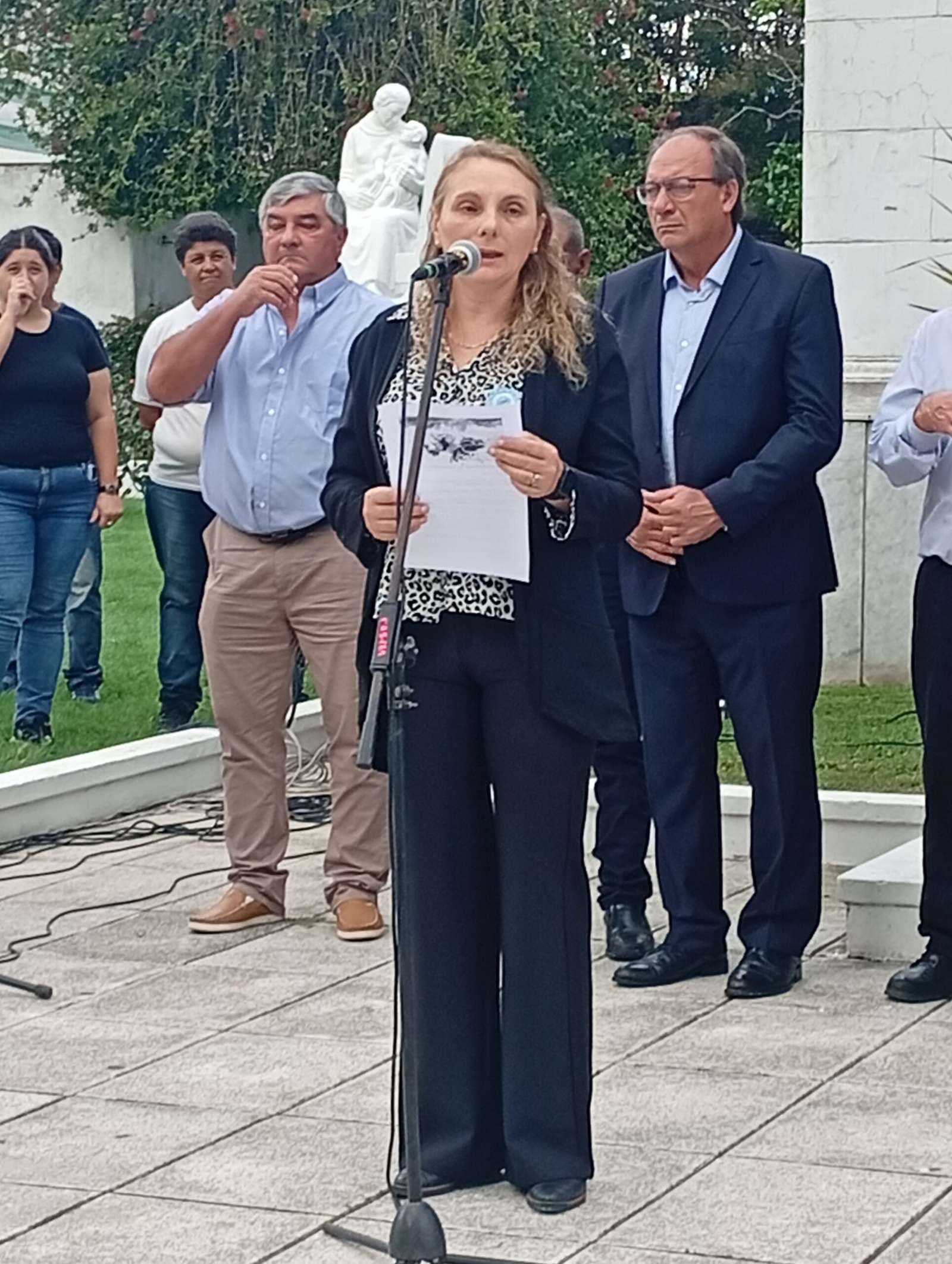 Durante el acto, la Banda de Música Municipal tuvo a su cargo la interpretación del Himno Nacional Argentino y la Marcha a Malvinas, acompañando uno de los momentos más sentidos de la ceremonia.