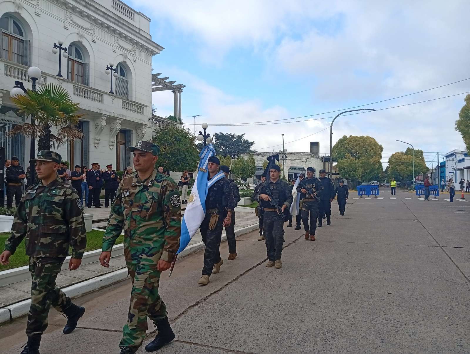 La jornada comenzó a las 10:00 horas con la colocación de la ofrenda floral, encabezada por el intendente municipal José Ramón Capra, el presidente del Honorable Concejo Deliberante Alberto Alaniz y la secretaria de Hacienda Florencia Caballero. Asimismo, una segunda ofrenda fue depositada por los Veteranos de Malvinas presentes, en un gesto cargado de emoción y memoria.