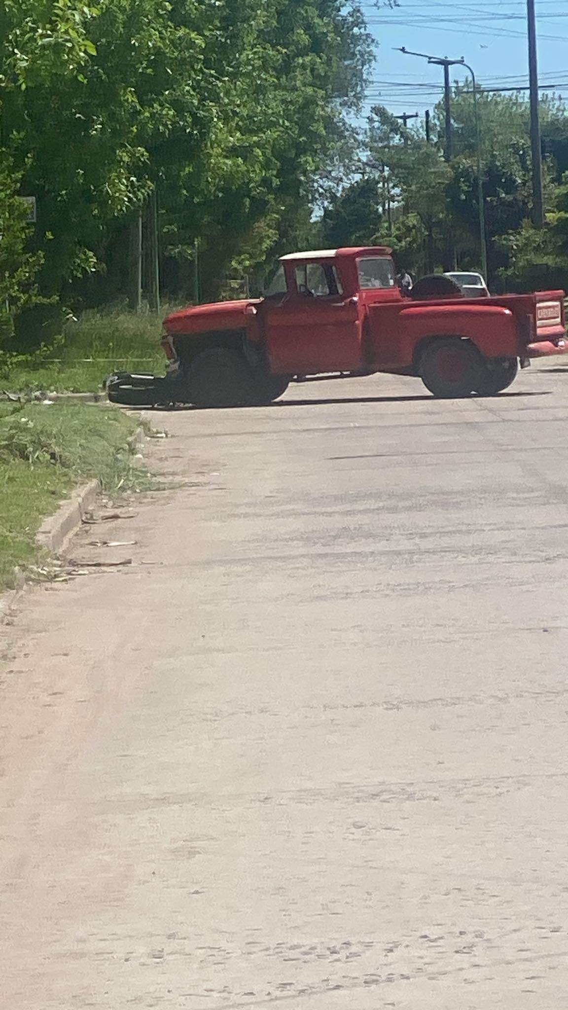 Por motivos que aún se tratan de establecer, una camioneta Chevrolet Pick Up roja, colisionó con una motocicleta Gilera Smash.-