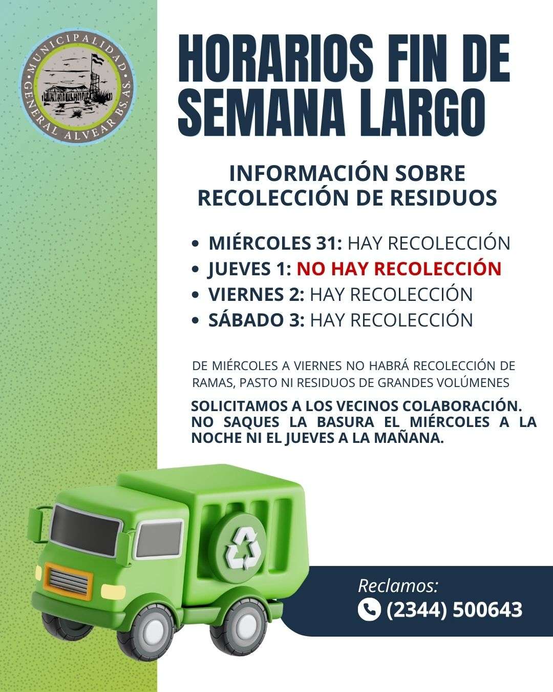 LA MUNICIPALIDAD INFORMA LOS HORARIOS FIN DE SEMANA LARGO